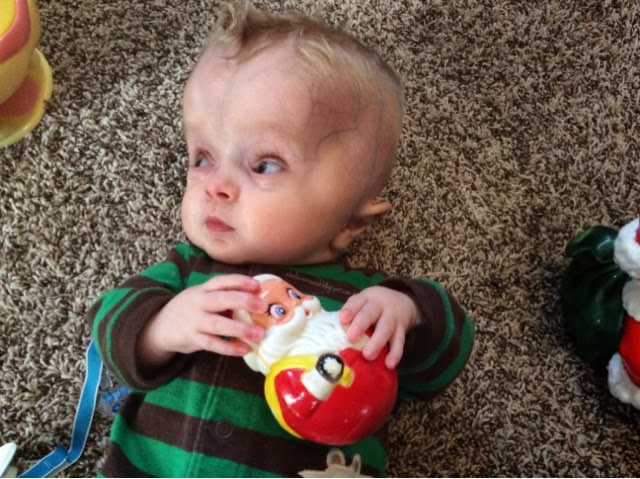 This year? It's going to be so different. He's grown so much! He's eating table foods. (Hello Christmas cookies!) He's only using his c-pap machine at night. He's sleeping in his room (instead of the dining room with his nurse nearby).